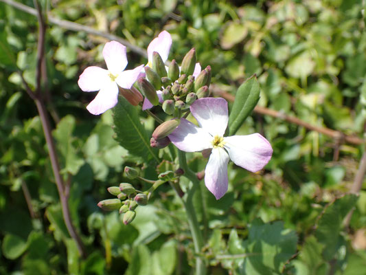 帰りには瀬波海岸のセナミスミレの様子を見ようと立ち寄ったのですが、個体数は少なくハマダイコンやカワラヨモギ、ハマボウフウ、ハマヒルガオ、つぼみをつけたウンラン、ハマナスの新芽などが目立っていました。
