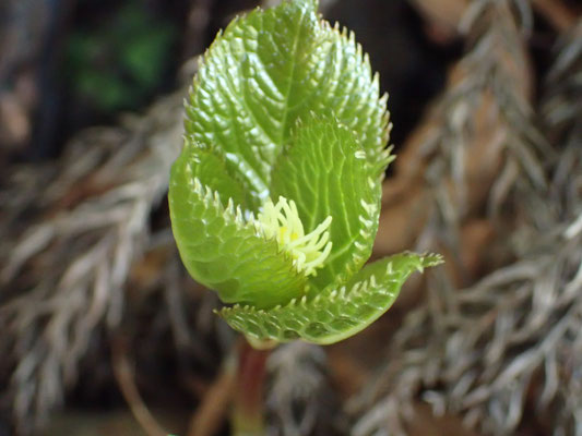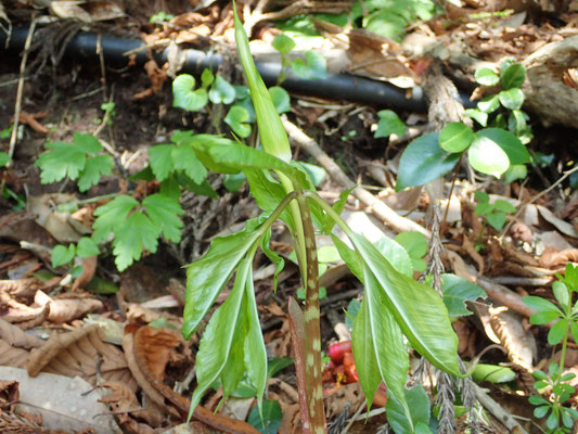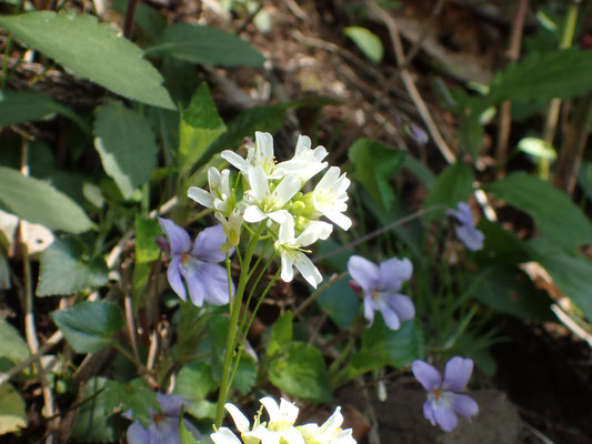 以前友の会の観察会でも訪れたことのある村上市勝木の筥堅八幡宮の社叢の植物たちの様子を見に行ってきました。参道脇には多くの植物を見ることができ、スミレの仲間で無茎のスミレサイシンと有茎のムラカミタチツボスミレ(?)の両方を比べることができました。ほかにもムラサキケマンやハマハタザオ、ヒトリシズカに今年はあまり見なかったコウライテンナンショウも見ることができました。