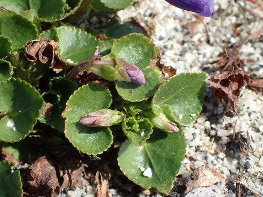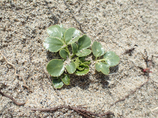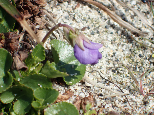 胎内市の桃崎浜にも立ち寄ってセナミスミレの様子を見たのですが、全回訪れた時よりも株がわかりやすくなっていて、よく見ると小さい葉の間から花が咲きそうになっていました。